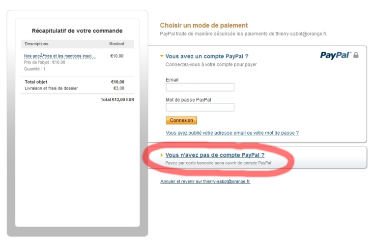 Pour payer par carte bancaire cliquez sur paiement Paypal , quand la page s'affiche allez en bas ,le site vous propose de payer sans compte Paypal et vous ouvre une page classique de paiement par carte bancaire évidemment sécurisé .